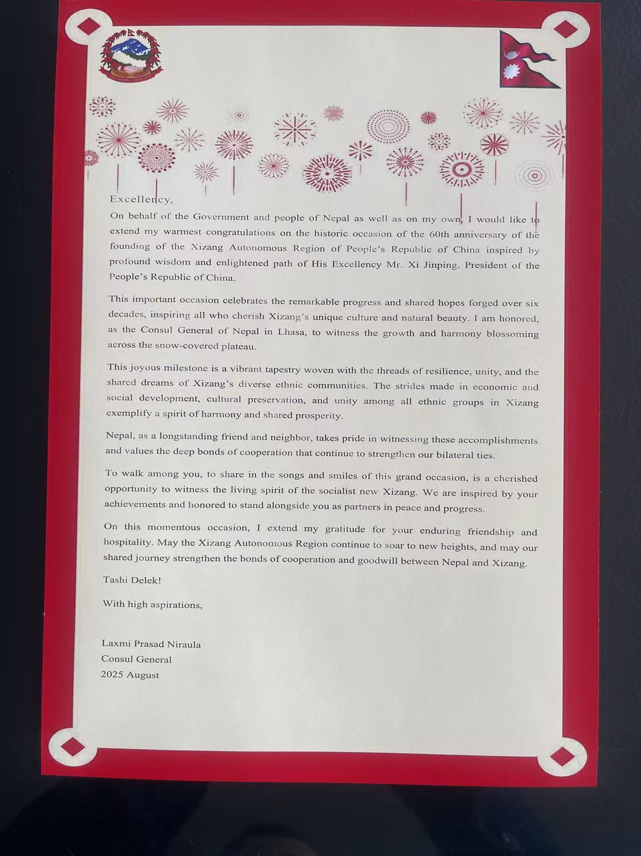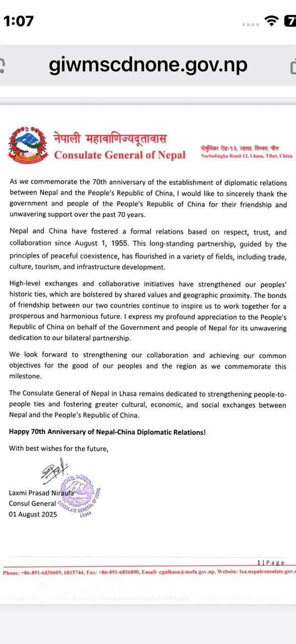 नेपाली महावाणिज्यदूत निरौला र सिजाङ अध्यागमनका महानिर्देशक सिहोङबीच भेटवार्ता