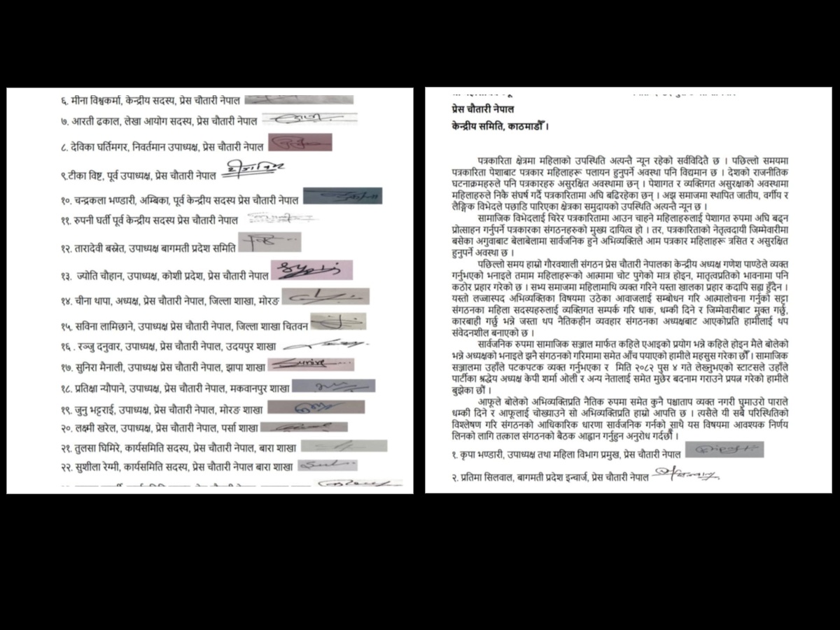 प्रेस चौतारीका अध्यक्षलाई बर्खास्त गर्न चौतारीकै २३ महिला नेताहरुको एमाले अध्यक्ष ओलीसँग माग