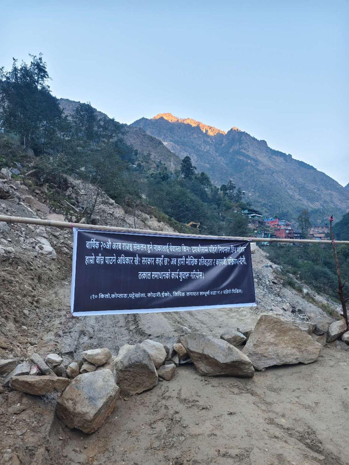 तीन दिनदेखि तातोपानी नाकाको सडक अवरुद्ध हुँदा छैन कसैको चासो