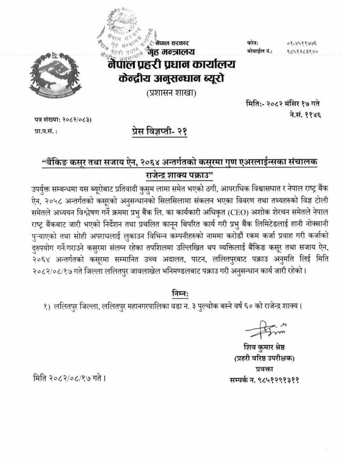 २०८२ मंसिर १७, बुधबार २१:१५