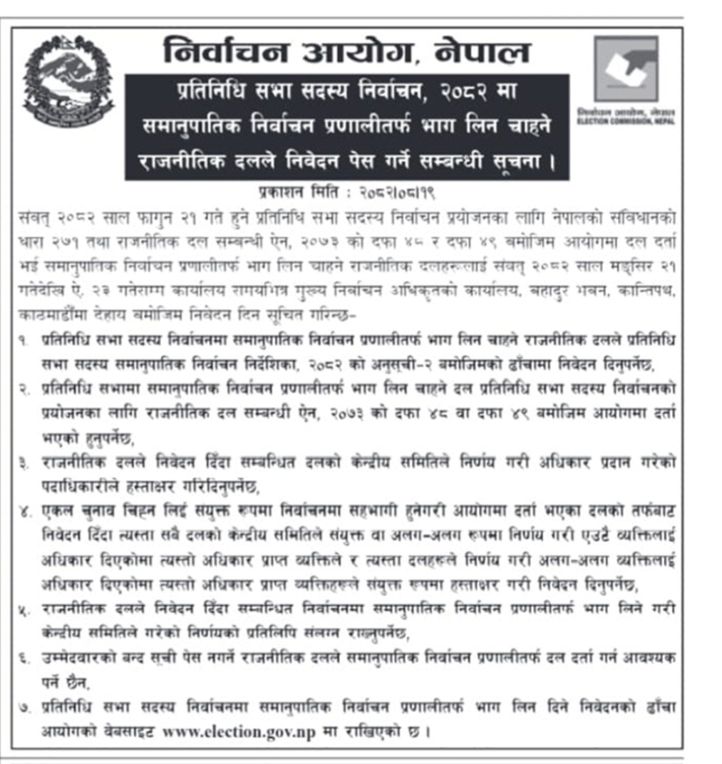 समानुपातिकतर्फ चुनाव लड्न चाहने दलहरूलाई निवेदन दिन आह्वान