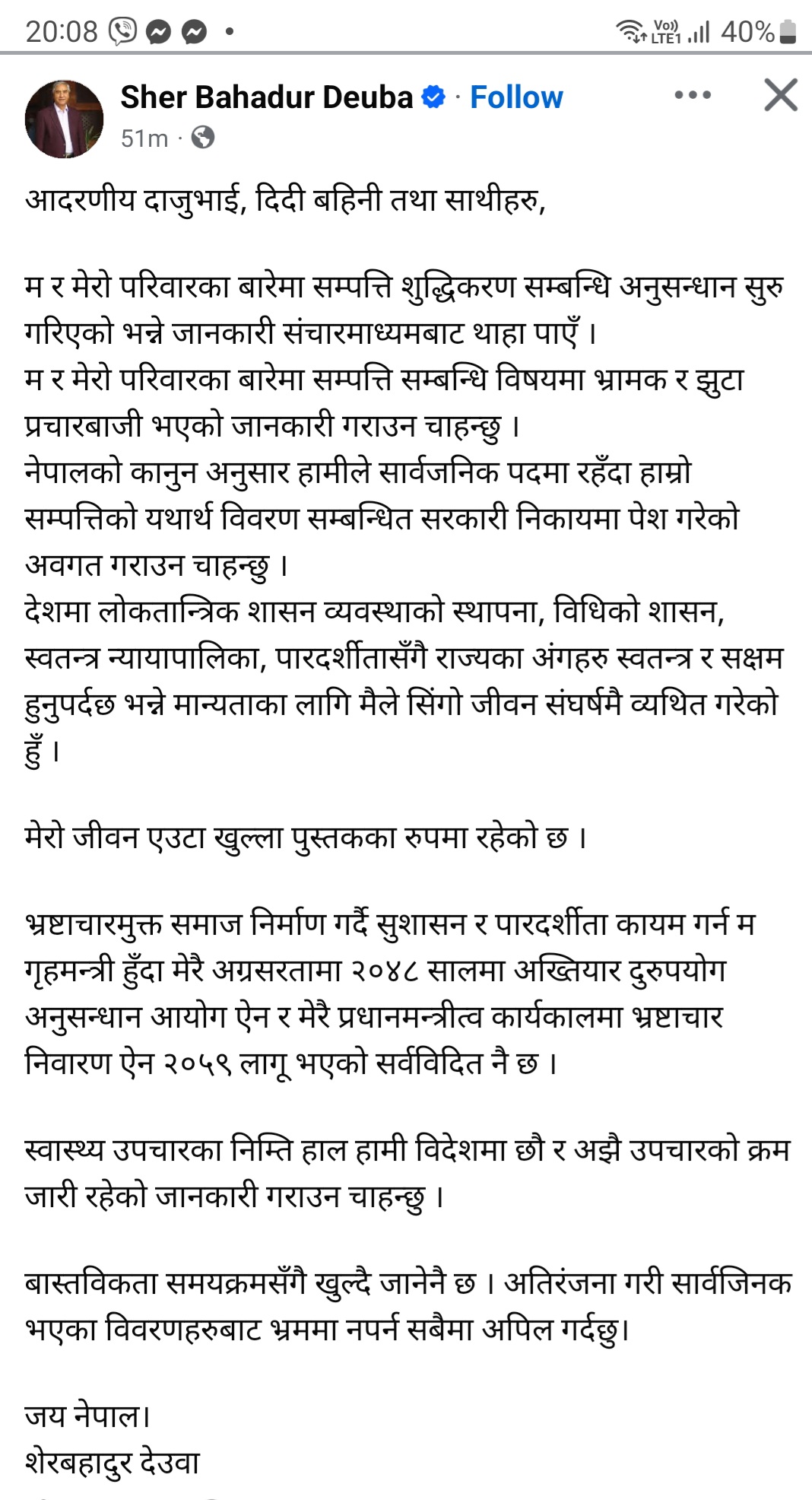 गृह मन्त्रीको फेरि लेखे स्टाटस, भ्रष्टाचार विरुद्ध कडा टिप्पणी