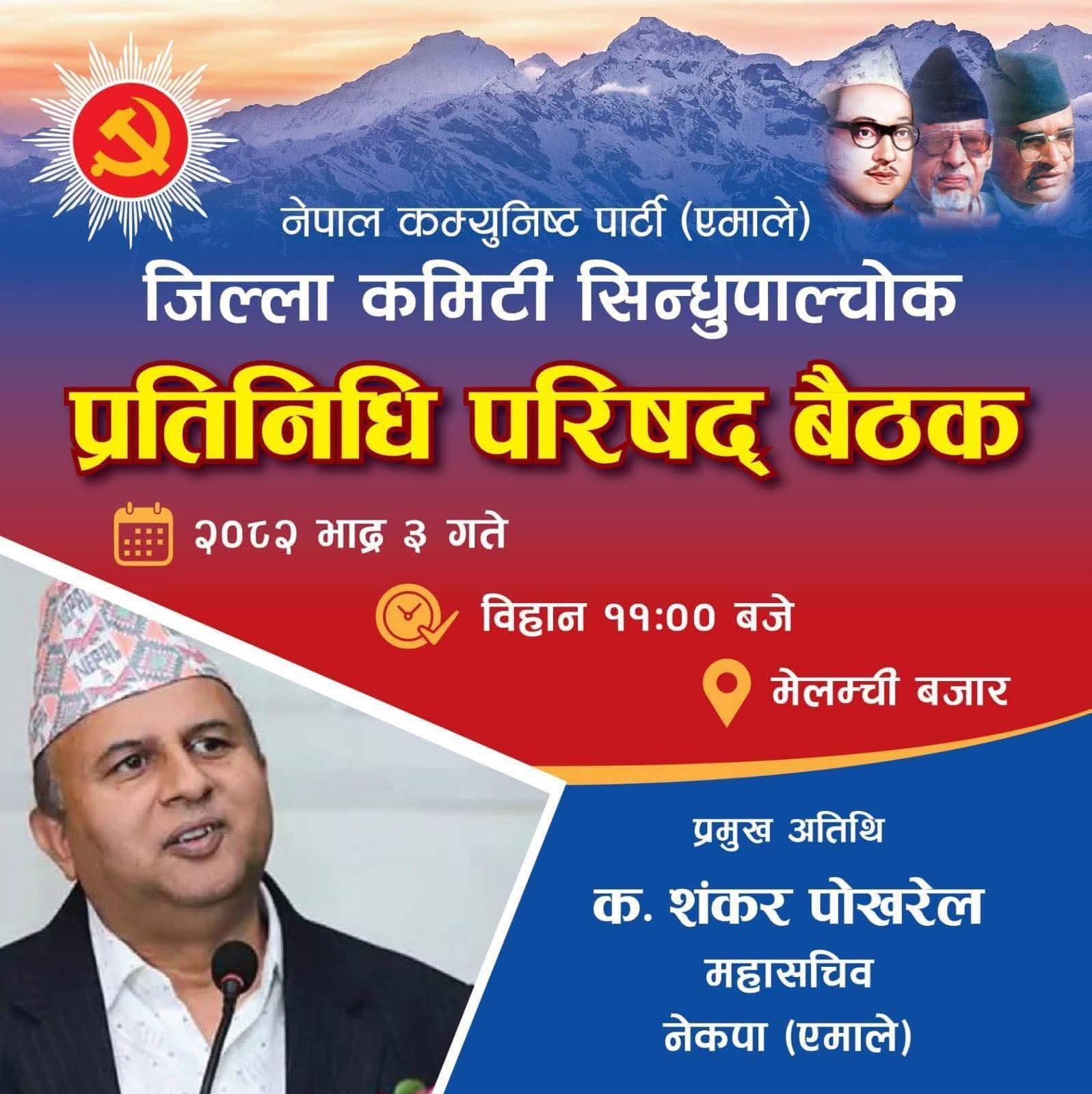 एमाले सिन्धुपाल्चोकको प्रतिनिधि परिषद् बैठक भोलि, बैठकमा ७ सय ४५ प्रतिनिधि सहभागि हुने