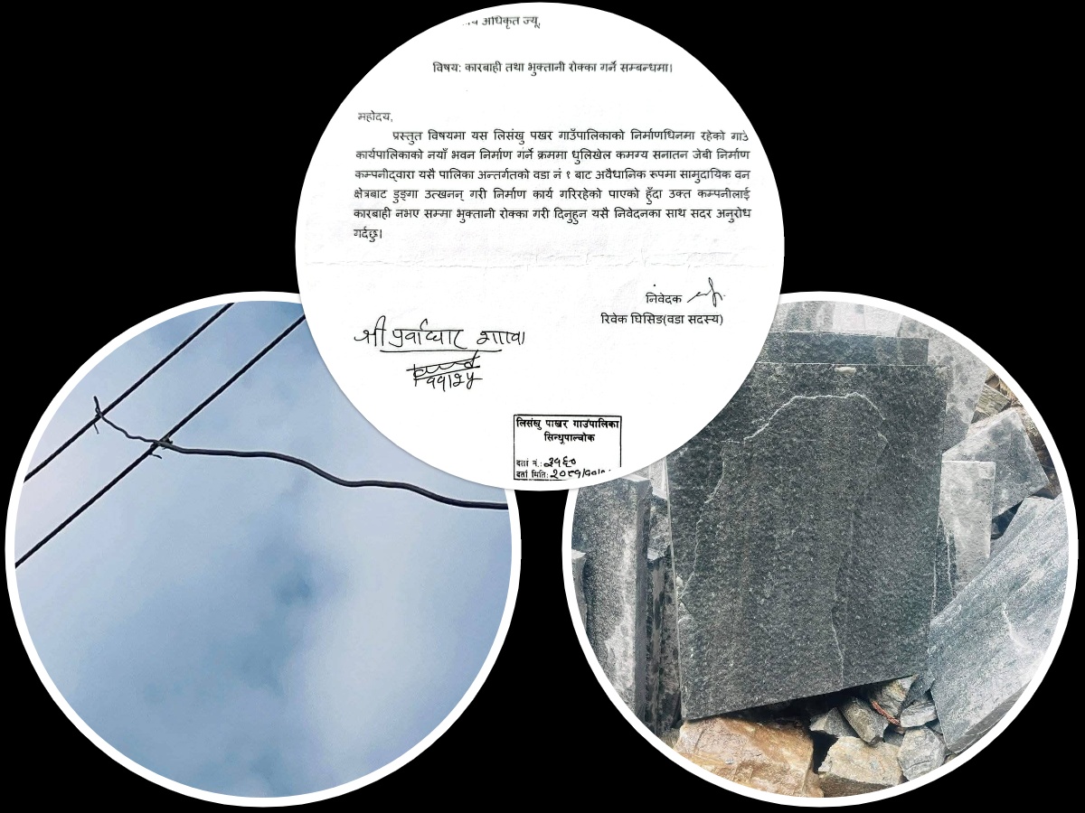 पालिकाको निर्माणमा ठेकेदारले सार्वजनिक सम्पत्ति दुरुपयोग गरेपछि लिसंखु पाखरमा बबाल